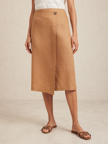 Linen Wrap Midi Skirt